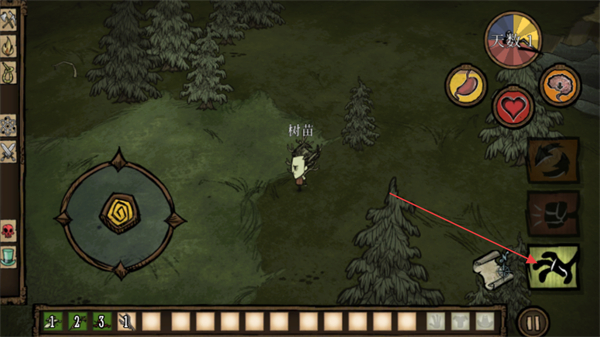 4、收集到樹苗后,點擊右側(cè)道具欄對應按鈕,可進行種植操作,拓展資源來源。
