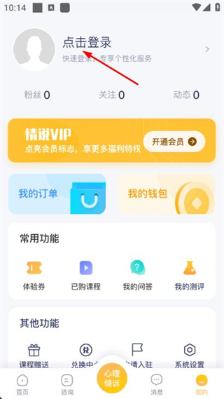 2、在我的頁(yè)面點(diǎn)擊登錄區(qū)域,進(jìn)入情說(shuō)賬號(hào)登錄頁(yè)面。