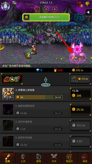 1、點擊紅色箭頭指向的紫色水晶,可獲取進(jìn)化所需的資源,這是積累進(jìn)化材料的關(guān)鍵操作。