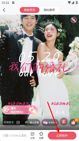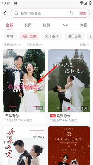 2、在婚禮邀請(qǐng)模板列表中,選擇目標(biāo)模板,進(jìn)入模板預(yù)覽頁面。