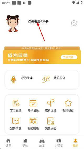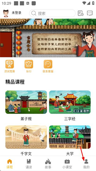 1、在課程頁面點擊底部我的,進入我的頁面。