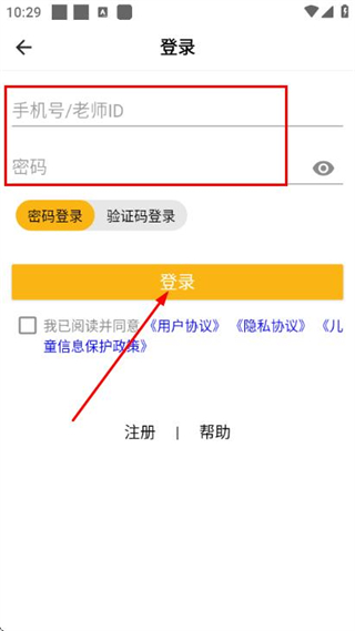 3、在登錄頁面填寫手機號和密碼對應的內(nèi)容,勾選相關協(xié)議后點擊登錄完成賬號登錄操作。