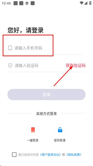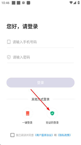 3、在輸入框中填寫驗證碼,勾選相關(guān)協(xié)議后點擊登錄,完成驗證碼登錄操作。