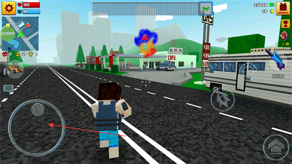 1、操控角色在城市道路移動,通過左側(cè)虛擬搖桿控制方向,觀察場景中的互動元素。