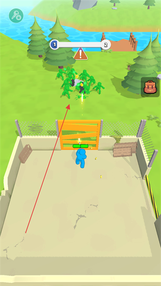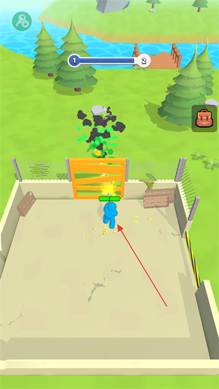 1、操控藍(lán)色角色攻擊圍欄外怪物,推進(jìn)進(jìn)度條,同時(shí)收集掉落物品,積累資源。
