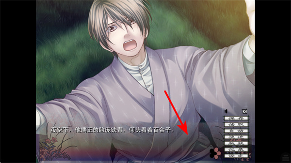 1、進(jìn)入游戲后,查看界面右側(cè)的文本選項欄,可選擇對應(yīng)選項推進(jìn)劇情對話,同時能看到當(dāng)前場景劇情描述。