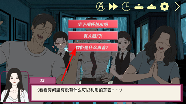 3、在多角色場景中,點擊衣柜是什么聲音選項,可觸發(fā)對衣柜的調查互動,解鎖相關劇情線索。