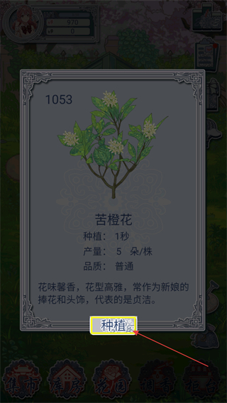 3、在種子列表中選中已購買的種子,點擊種植按鈕,等待種子的種植時長結(jié)束。