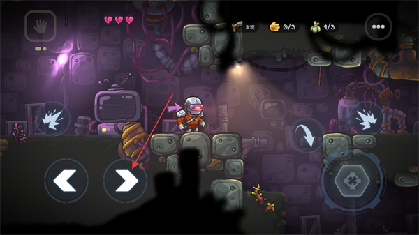 1、通過左右箭頭按鈕控制角色移動(dòng),場景有電視類物品,保持角色探索區(qū)域。