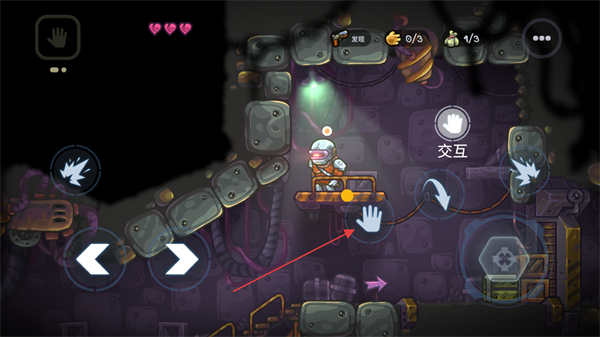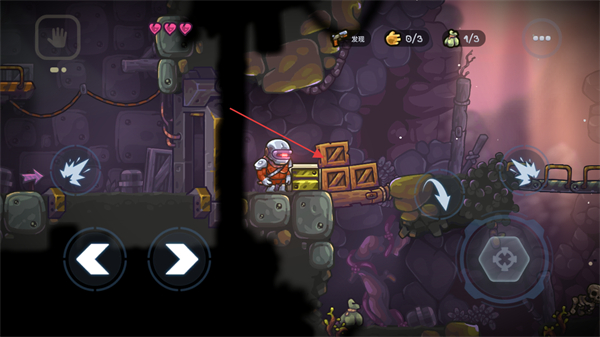 2、移動(dòng)角色至新區(qū)域,找到帶箱子的平臺(tái),點(diǎn)擊右側(cè)箭頭可切換交互功能。