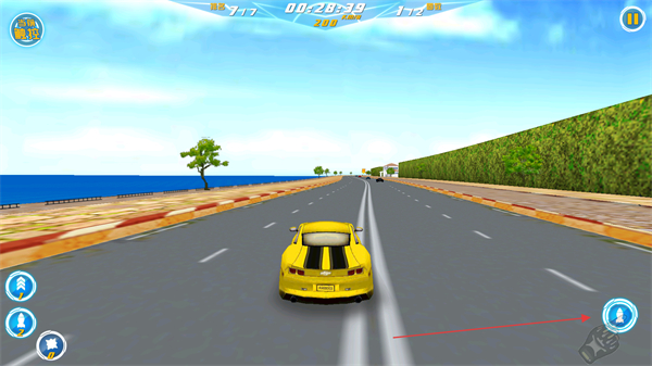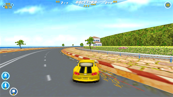 1、駕駛黃色賽車參賽,目標(biāo)是獲得前三名通關(guān),沿賽道超越前方車輛推進。