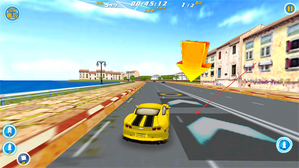 4、跟隨賽道箭頭指示行駛,調(diào)整賽車方向,按路線推進賽程。