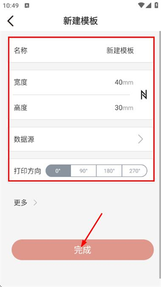 3、在新建模板頁面設置名稱、寬度等參數(shù)后,點擊底部的完成按鈕,完成空白模板的創(chuàng)建操作。