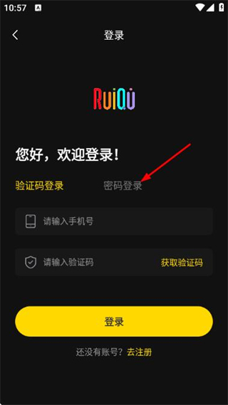 2、在登錄頁(yè)面點(diǎn)擊密碼登錄選項(xiàng),切換到密碼登錄模式。