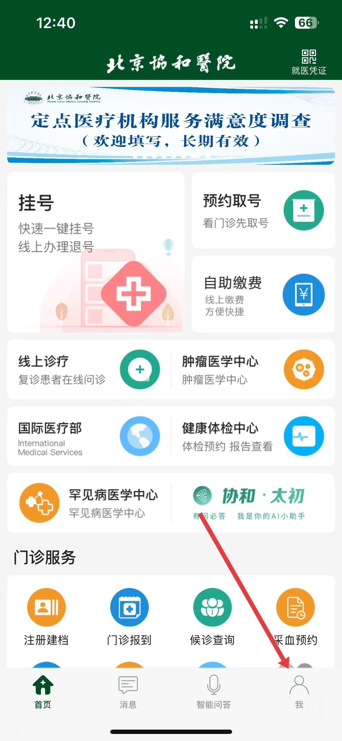 1、打開北京協(xié)和醫(yī)院app,點擊底部導航欄最右側我選項,進入個人中心界面。
