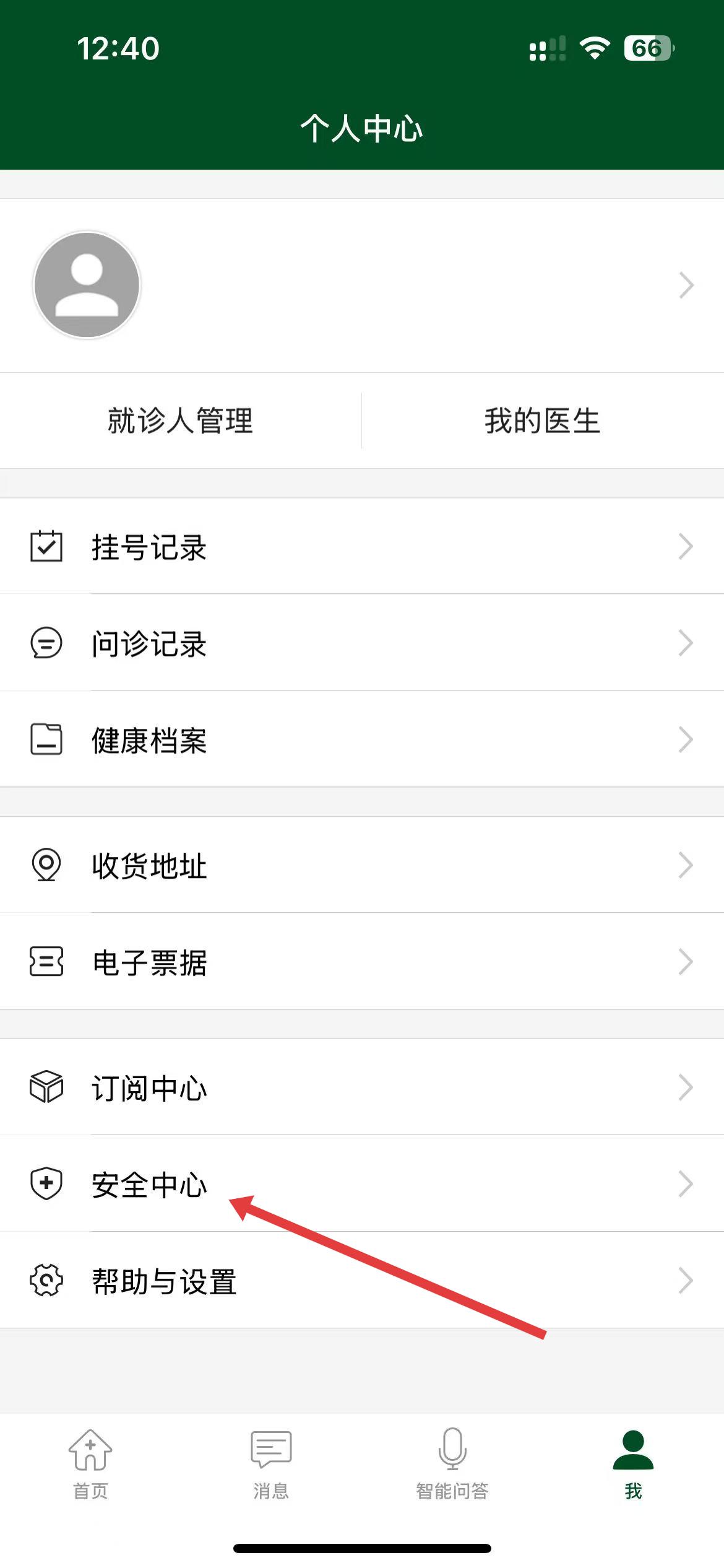 2、在個人中心界面中,找到并點擊安全中心選項,進入安全中心頁面。