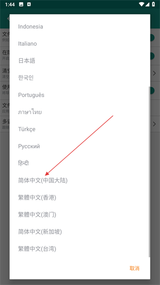 4、在語(yǔ)言選擇列表中,點(diǎn)擊簡(jiǎn)體中文(中國(guó)大陸)。
