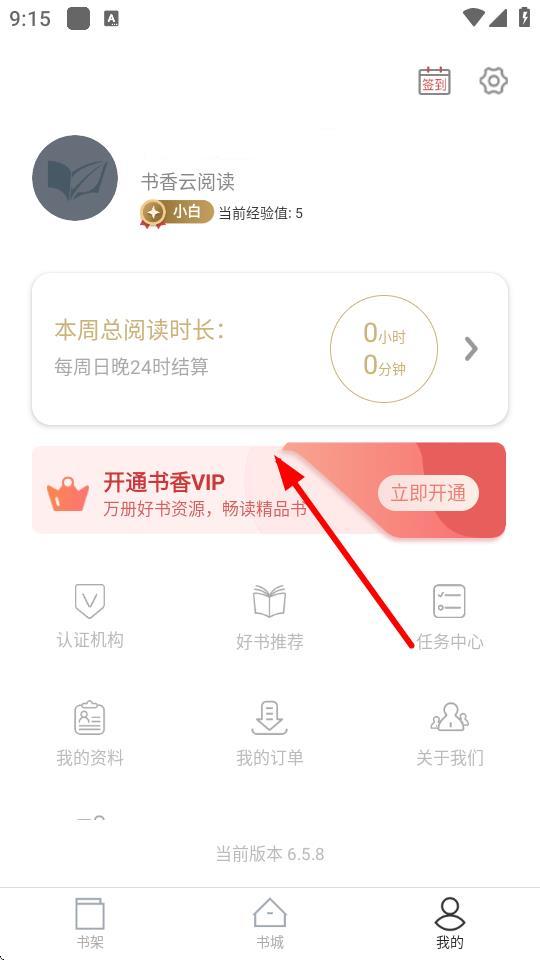 4、在個人頁面中,可查看賬號基本信息,還能根據(jù)需求進行如開通書香VIP、認(rèn)證機構(gòu)等后續(xù)操作。