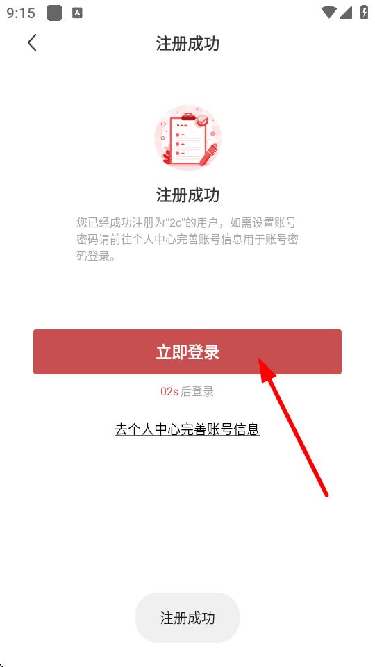 3、頁面提示注冊成功后,點擊立即登錄按鈕,進入app個人頁面。