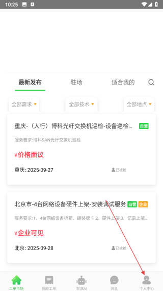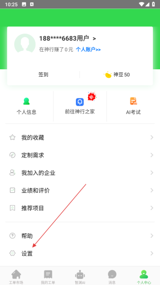 1、打開神行工程師APP,點(diǎn)擊底部導(dǎo)航欄的個(gè)人中心,進(jìn)入個(gè)人中心頁面。