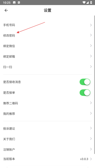 3、進(jìn)入設(shè)置頁面后,點(diǎn)擊修改密碼選項(xiàng)。
