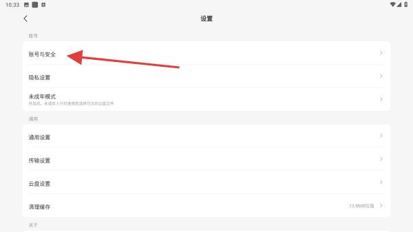 3、進(jìn)入設(shè)置的界面內(nèi),點(diǎn)擊賬號(hào)與安全的功能按鈕。