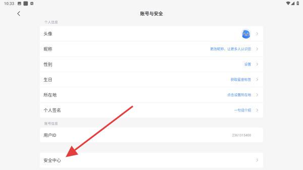 4、在賬號(hào)與安全的頁面內(nèi),找到并點(diǎn)擊安全中心的功能。