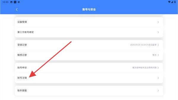 5、在賬號(hào)與安全的界面內(nèi),向下滑動(dòng)找到賬號(hào)注銷并點(diǎn)擊即可。