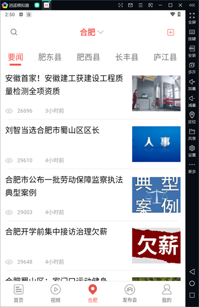 3、點擊合肥選項能夠查看當?shù)氐囊?,還能選擇不同的縣了解當?shù)氐纳鐣Y訊信息;