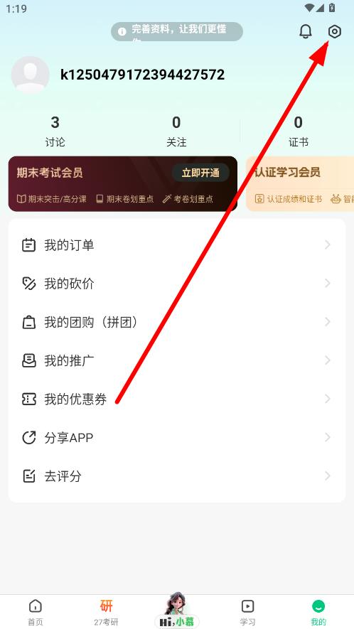 2、在個(gè)人界面中,點(diǎn)擊右上角設(shè)置圖標(biāo)進(jìn)入設(shè)置頁面。