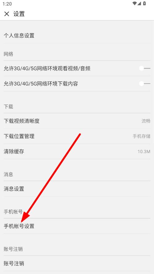 3、在設(shè)置頁面下滑,找到并點(diǎn)擊手機(jī)帳號設(shè)置選項(xiàng)。