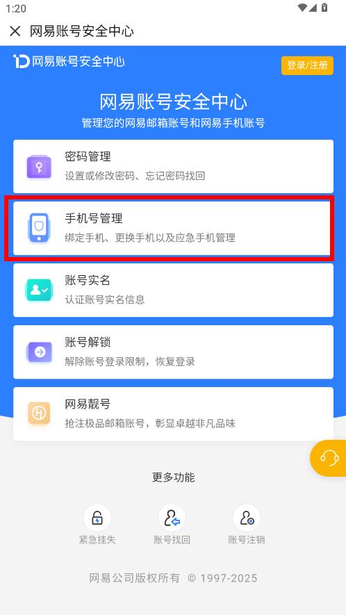 5、在網(wǎng)易賬號安全中心頁面,點(diǎn)擊手機(jī)號管理,按提示操作即可完成換綁手機(jī)號。