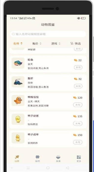 1、在動(dòng)物圖鑒頁面,需要點(diǎn)擊搜索欄,輸入動(dòng)物名稱進(jìn)行搜索。