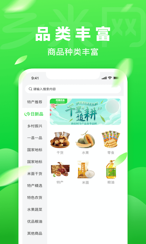 鄉(xiāng)米網(wǎng)app是一款為用戶提供購物的商城,商城里面有非常多來自全國各地的特產(chǎn),能夠讓您一鍵隨心購,里面的商品種類也是非常的齊全,還有一些新人優(yōu)惠專項(xiàng),讓您能夠買到最優(yōu)惠的商品,更多優(yōu)惠活動(dòng)等你前來查看哦。