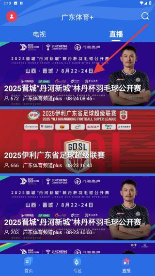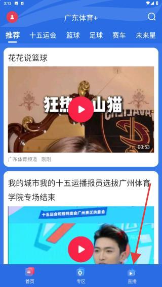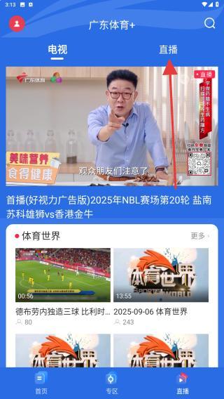 1、打開廣東體育APP進入到首頁內(nèi),點擊右下角直播的功能按鈕。