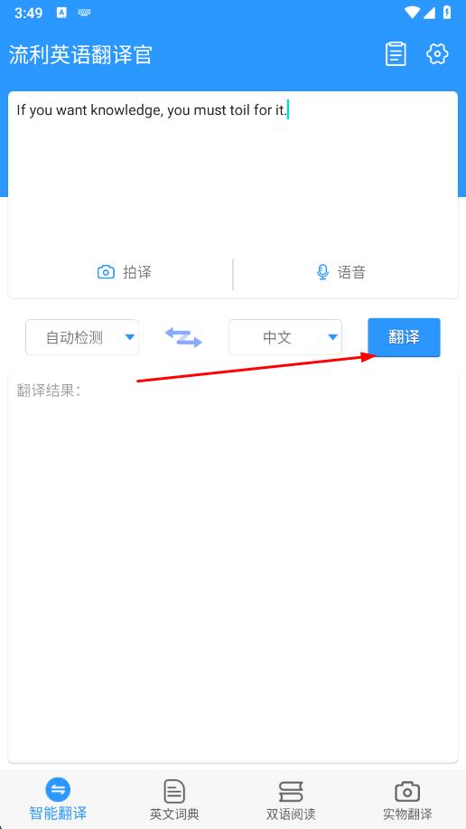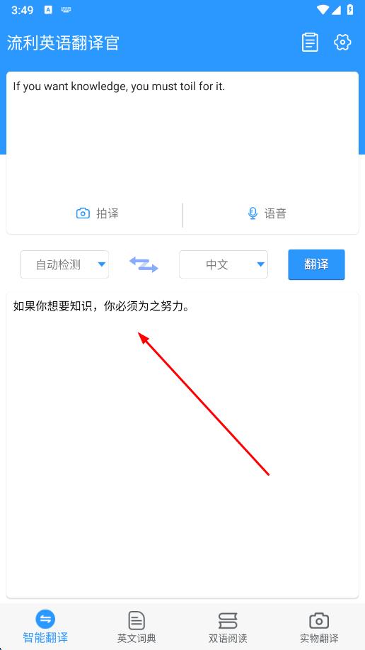 3、翻譯結(jié)果就會顯示在下方的翻譯結(jié)果區(qū)域,呈現(xiàn)出對應(yīng)的中文內(nèi)容。