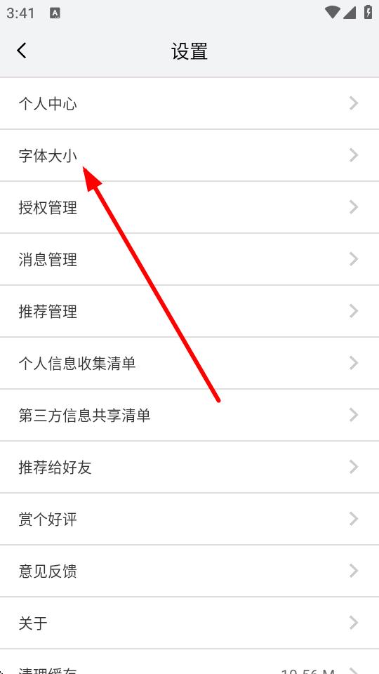 3、在設(shè)置界面里,找到并點擊字體大小選項,進(jìn)入字體大小設(shè)置頁面。