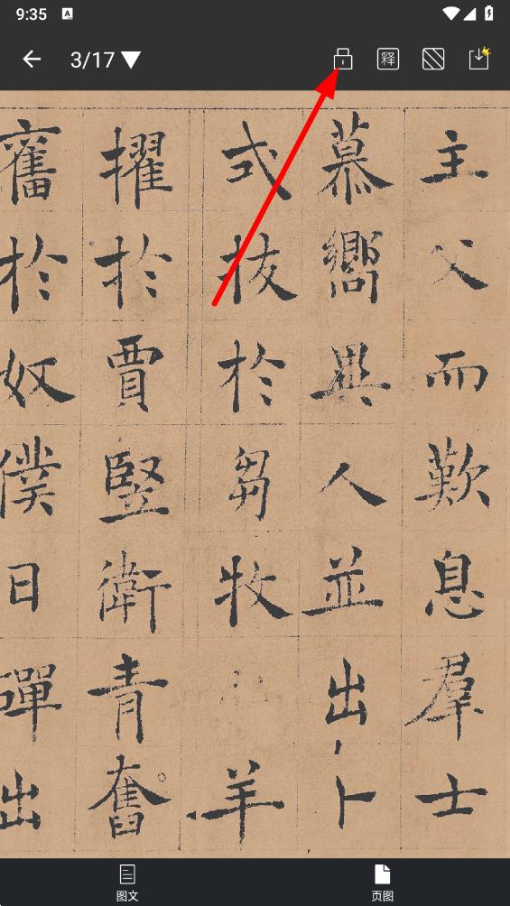 4、在頁圖展示模式下,點擊頁面上方的鎖定圖標,即可完成頁面鎖定操作。