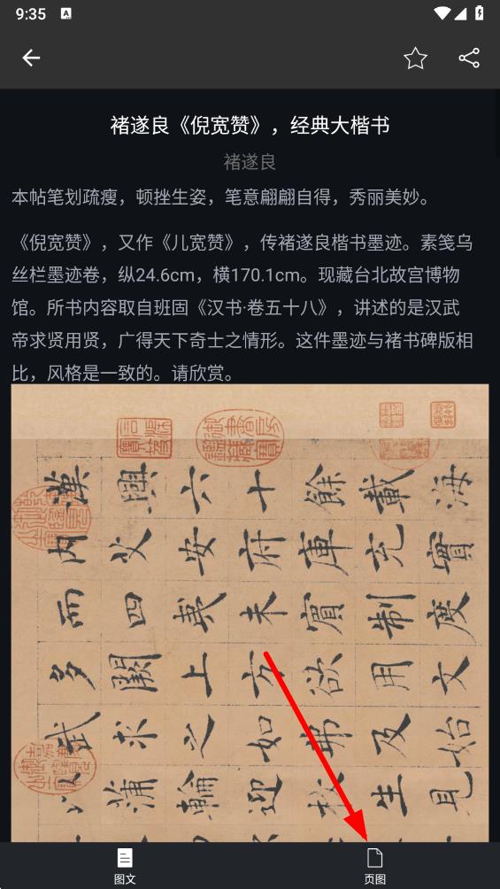 3、在作品詳情頁面,點擊底部的頁圖選項,切換到頁圖展示模式。