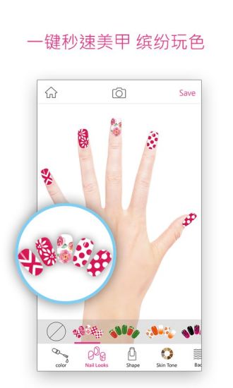 你可以立即拍攝或使用內(nèi)建手模照片來進(jìn)行設(shè)計,并透過膚色來個人化你的美甲照片