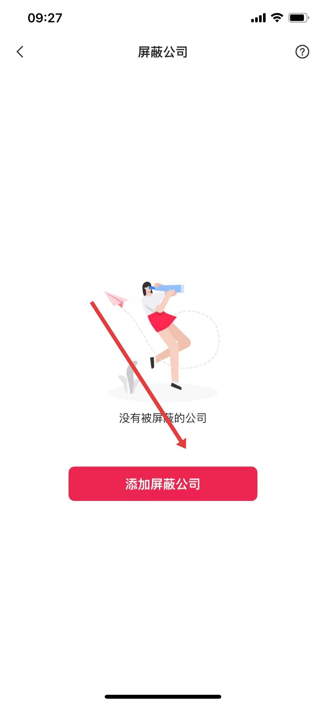 5、在屏蔽公司頁面,點(diǎn)擊添加屏蔽公司,找到需要屏蔽的公司即可。