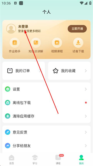 2、在個人頁面中,找到并點擊上方的未登錄區(qū)域。