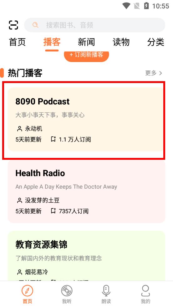 2、在播客界面的熱門播客中,選擇感興趣的播客如8090Podcast。