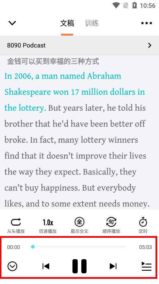 4、進(jìn)入節(jié)目播放頁面后,可使用底部的播放控制按鈕進(jìn)行播放、暫停、快進(jìn)、后退等操作點(diǎn)擊文稿還能查看節(jié)目對應(yīng)文字內(nèi)容。