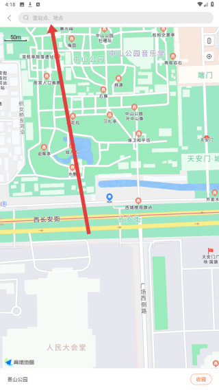 3、在地圖頁面頂部的搜索欄中,可以輸入要添加的地點位置名稱信息,快速定位目標(biāo)位置添加到收藏中。