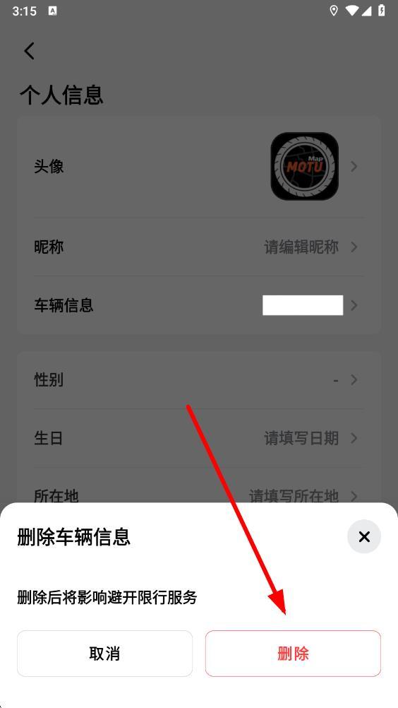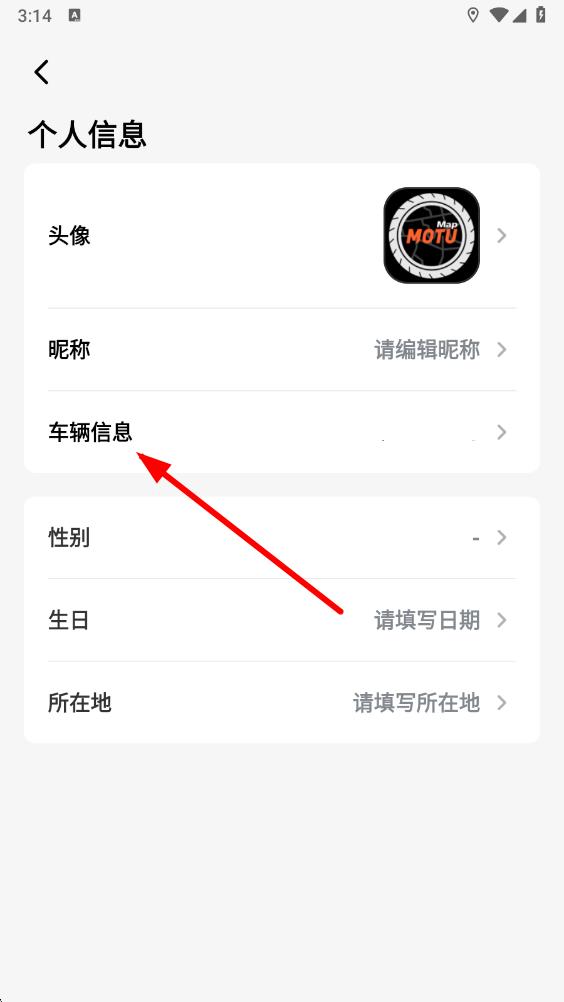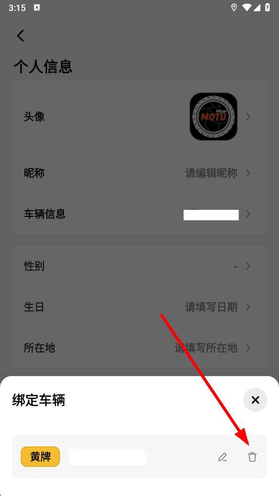 3、在個(gè)人信息頁(yè)面中,點(diǎn)擊車輛信息選項(xiàng),彈出綁定車輛相關(guān)操作欄。
