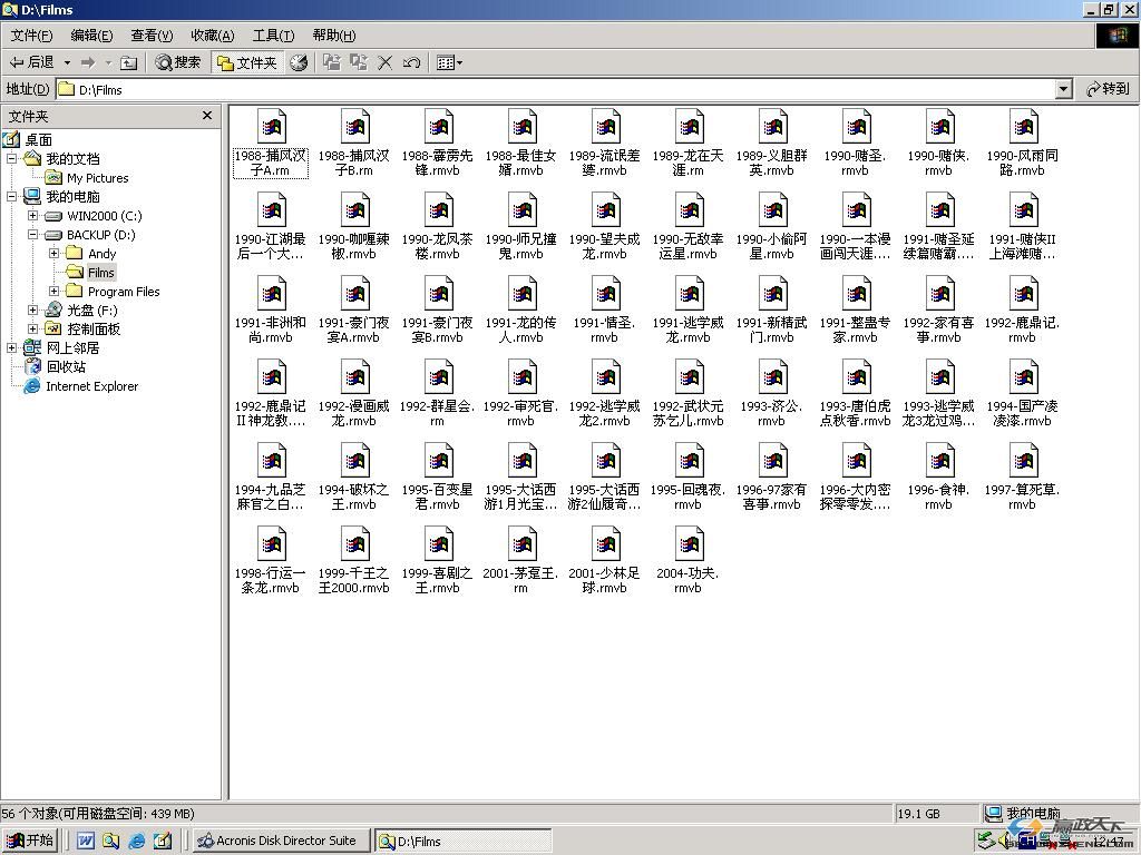 再回到Windows下,最想要的數(shù)據(jù)重新出現(xiàn)在面前了(呵呵,大家也可以數(shù)數(shù)我收集到的周星馳電影數(shù)量啊),圖16。