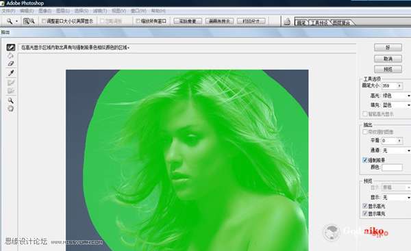 選擇面板里的“邊緣高光器工具”涂抹人物主體,選擇“強(qiáng)制前景”設(shè)置顏色為“白”(具體設(shè)置如圖)。