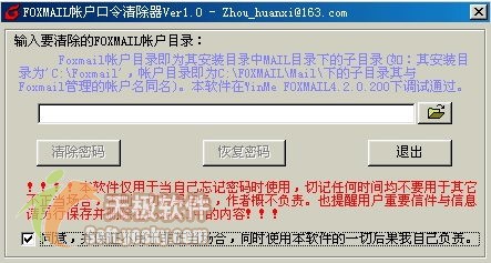 如果你不喜歡自己動(dòng)手,還可以使用專(zhuān)用的“Foxmail帳戶(hù)口令清除器”幫你解除Foxmail的賬戶(hù)口令,下載后運(yùn)行“Foxmail帳戶(hù)口令清除器”,單擊“打開(kāi)”按鈕選擇要清除口令的Foxmail帳戶(hù)目錄(圖3),然后點(diǎn)擊“清除密碼”按鈕即可。打開(kāi)Foxmail,可以直接進(jìn)入忘記口令的賬戶(hù)了?。?strong>點(diǎn)這里下載)