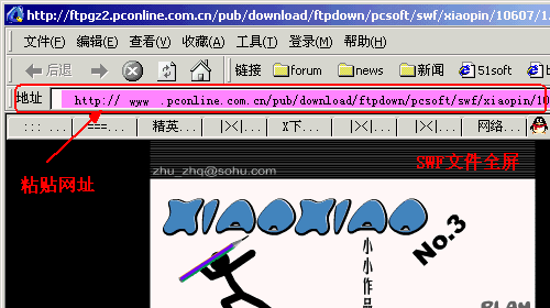 把它粘貼到瀏覽器的地址欄上,按回車,F(xiàn)LASH就全屏地出現(xiàn)在瀏覽器窗口。